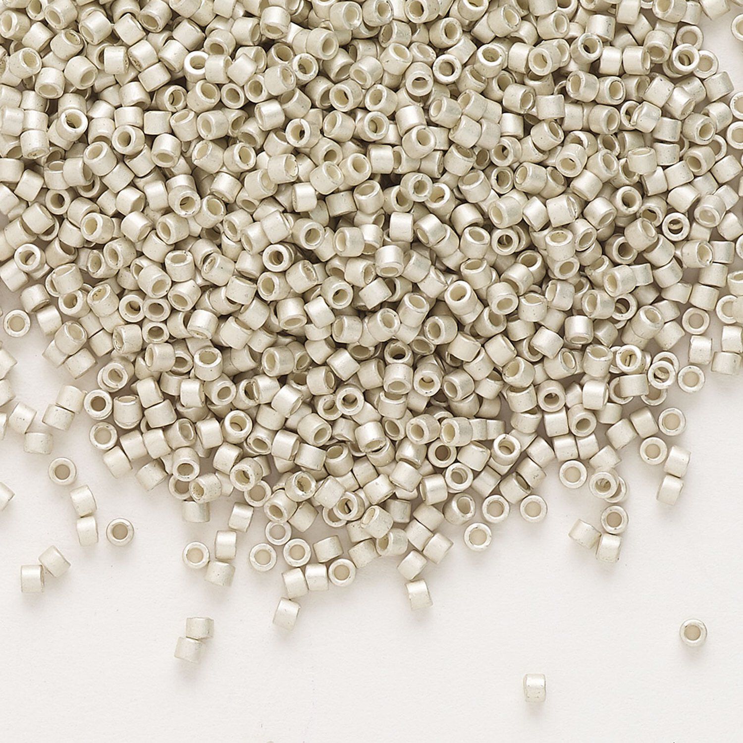 Seed bead, Delica®, glass, pkg/50g, #11 round, opaque semi-matte galvanized silver (DB-1151).
