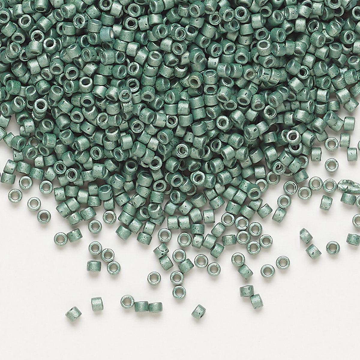 Seed bead, Delica®, glass, pkg/50g, #11 round, opaque matte galvanized dark aqua (DB-1172).