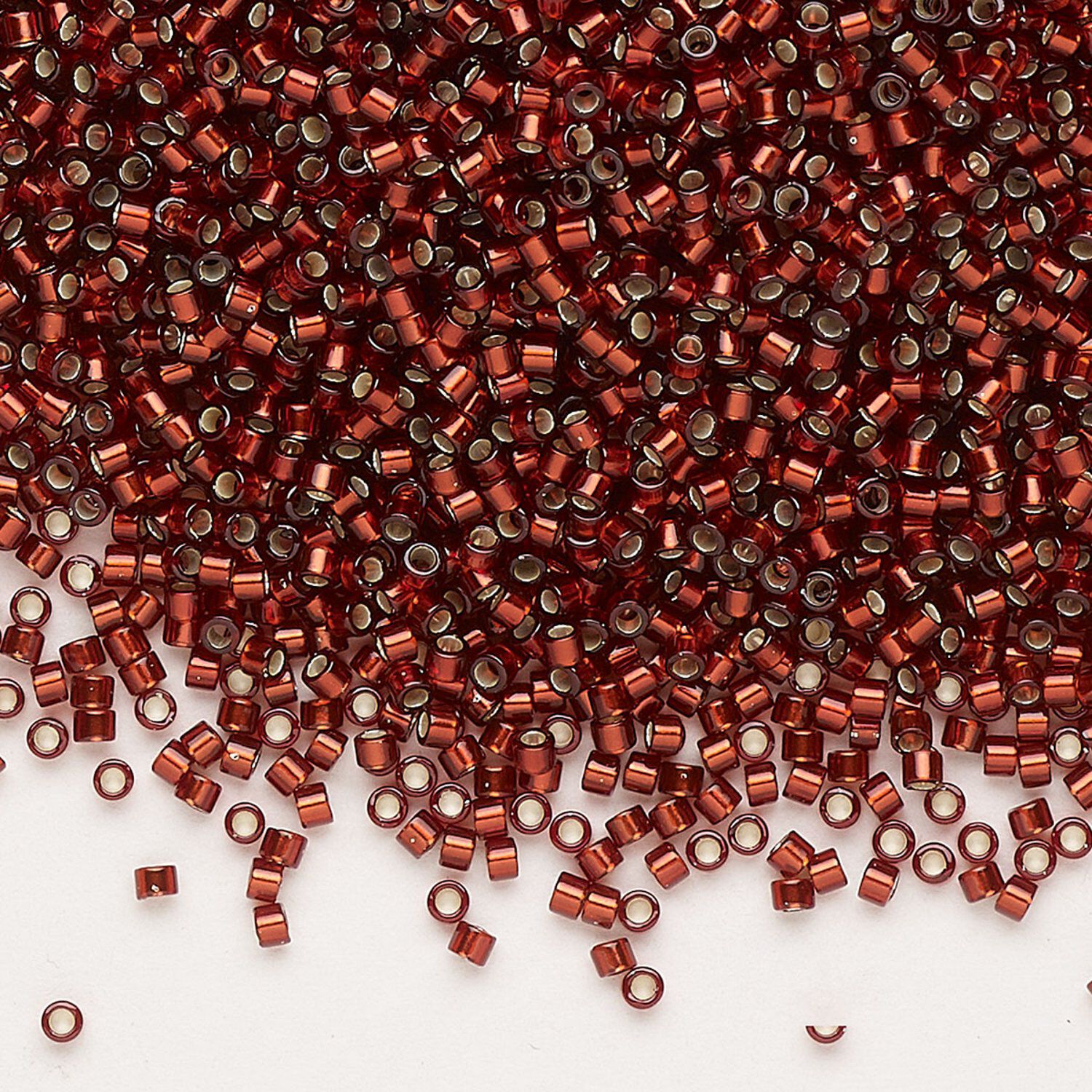 Seed bead, Delica®, glass, pkg/50g, #11 round, opaque silver-lined dark cranberry (DB-1202).