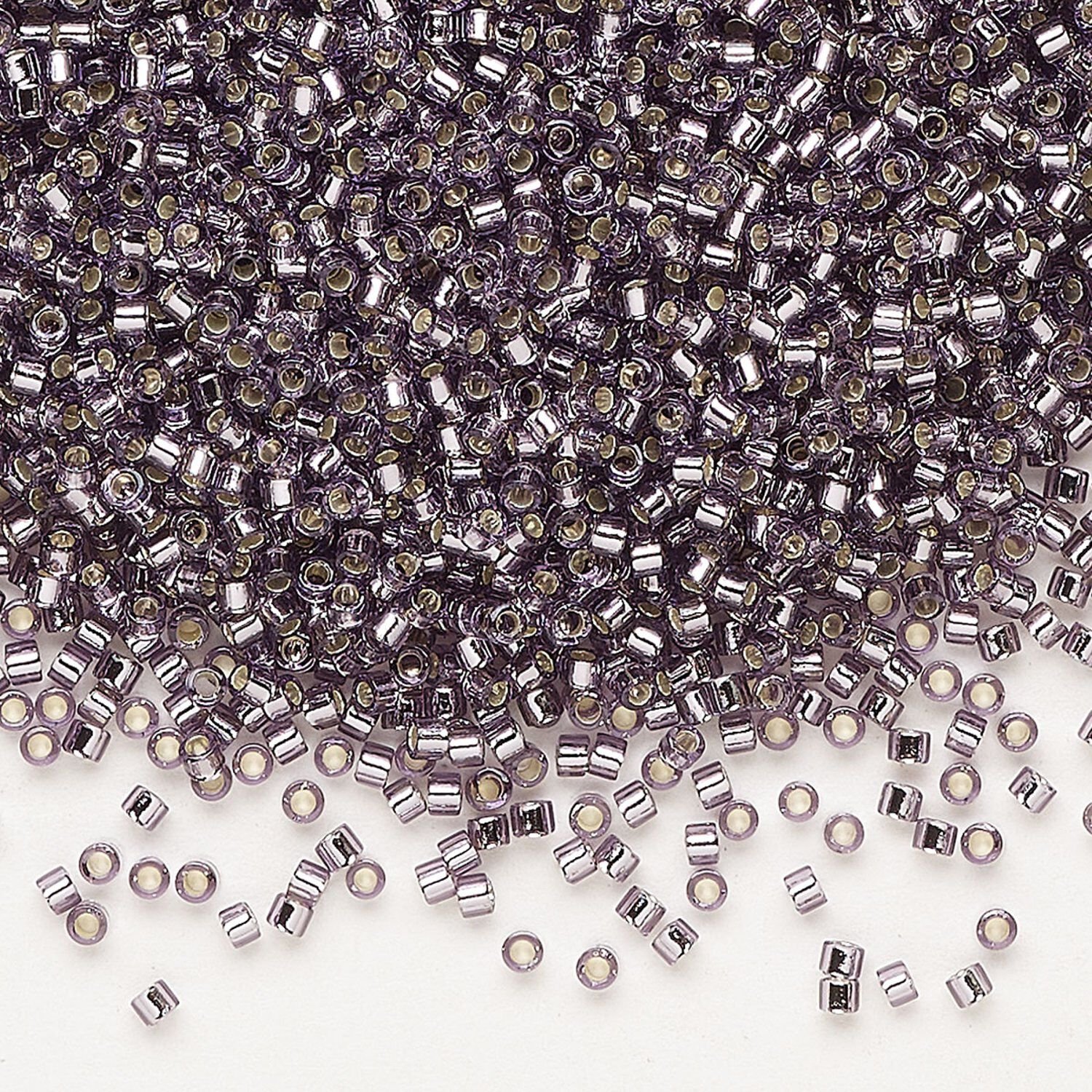 Seed bead, Delica®, glass, pkg/7.5g, #11 round, transparent silver-lined amethyst purple (DB-1205).
