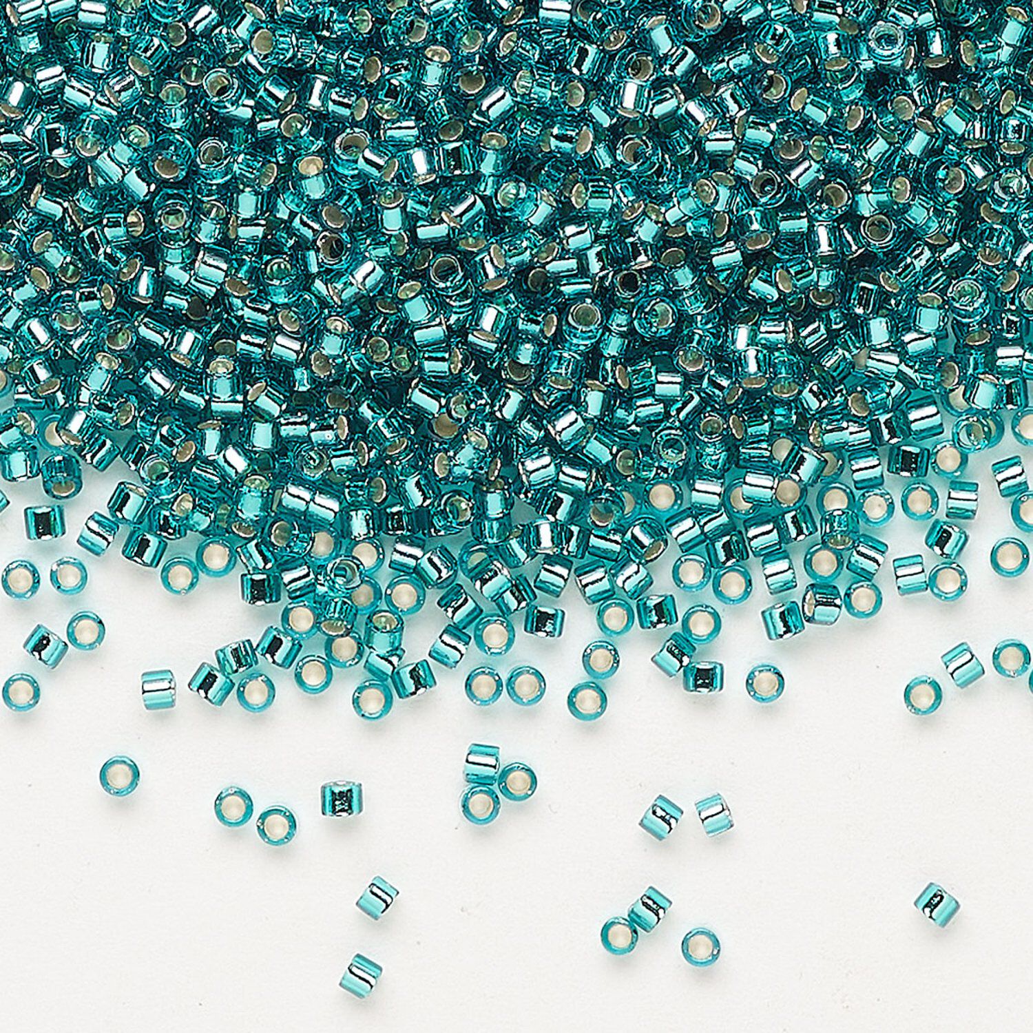Seed bead, Delica®, glass, pkg/250g, #11 round, transparent silver-lined teal (DB-1208).