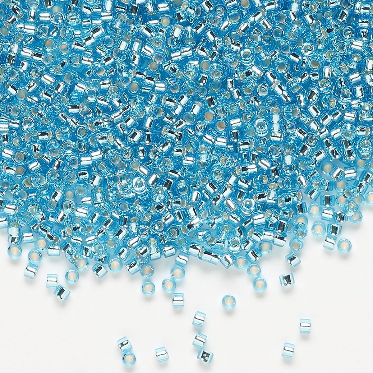 Seed bead, Delica®, glass, pkg/7.5g, #11 round, transparent silver-lined ocean blue (DB-1209).