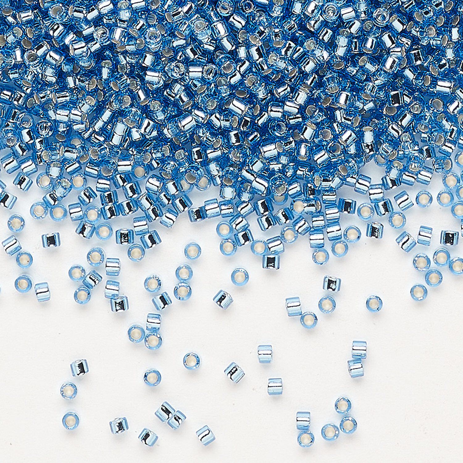Seed bead, Delica®, glass, pkg/250g, #11 round, transparent silver-lined light blue (DB-1210).