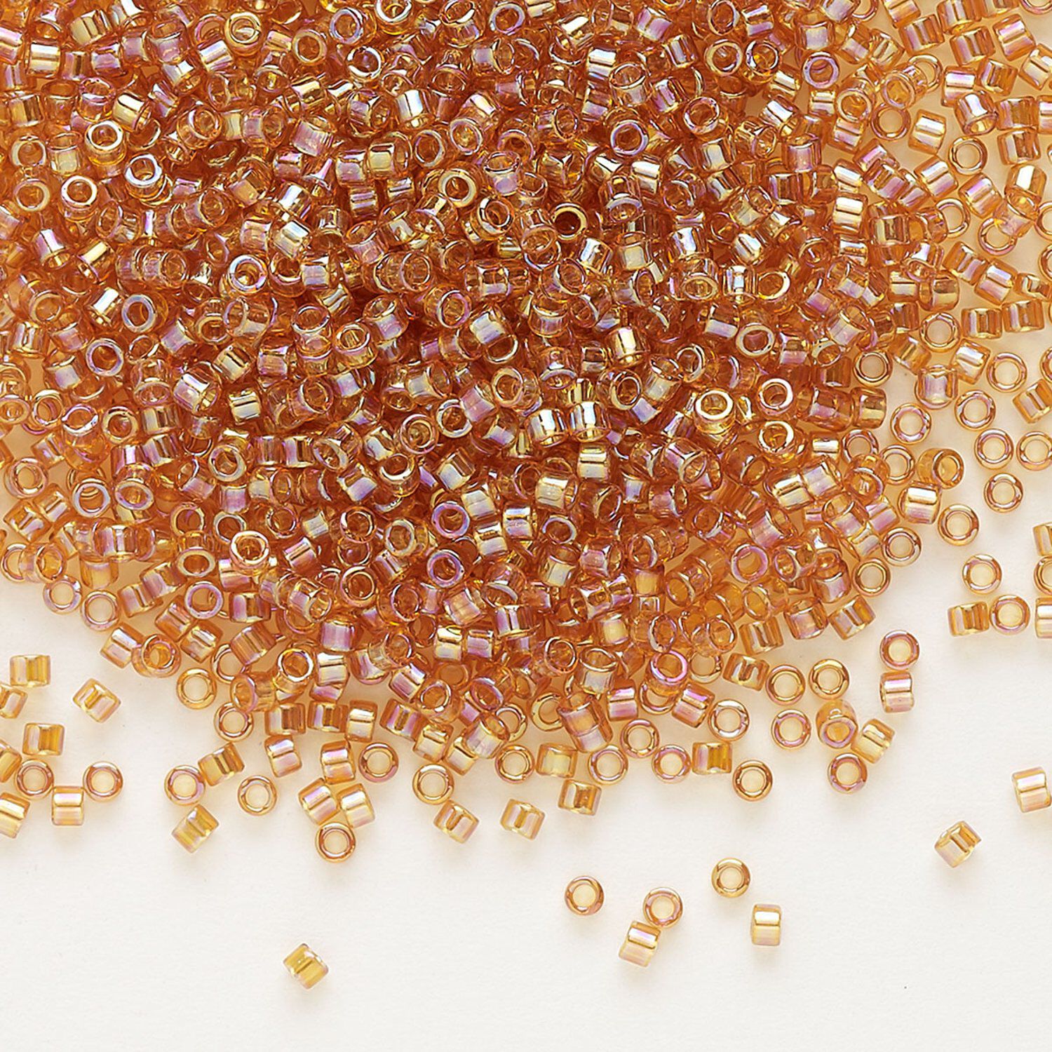 Seed bead, Delica®, glass, pkg/7.5g, #11 round, translucent rainbow marigold (DB-1241).