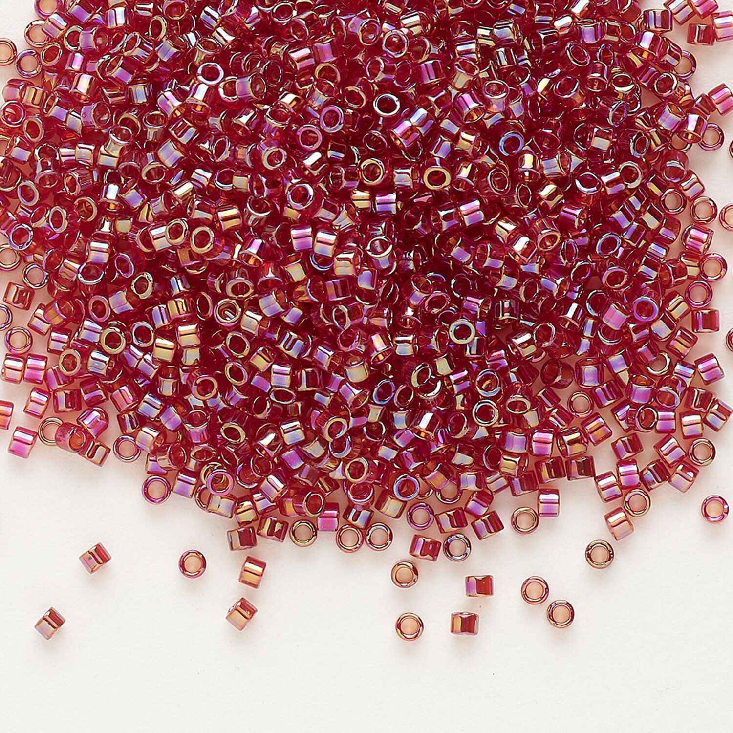 Seed bead, Delica®, glass, pkg/250g, #11 round, translucent rainbow dark cranberry (DB-1242).