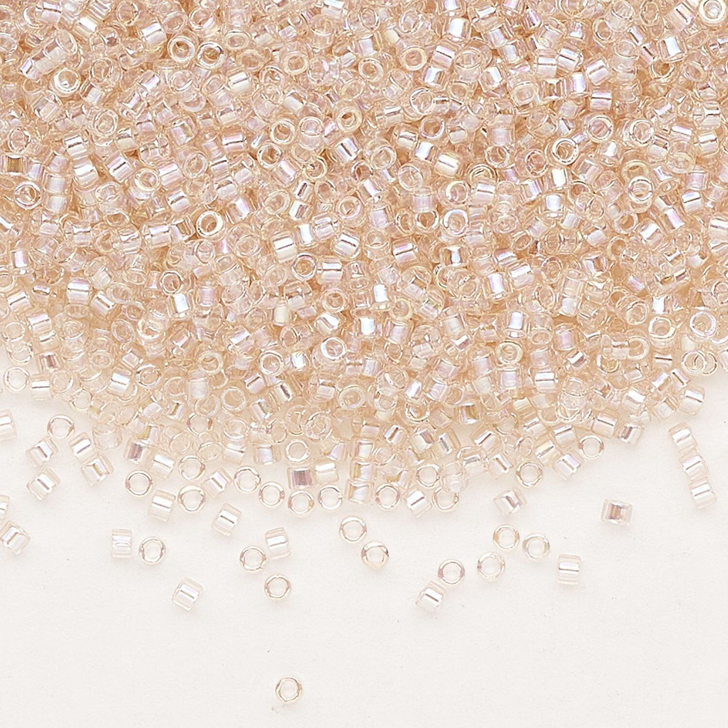 Seed bead, Delica®, glass, pkg/7.5g, #11 round, translucent rainbow pink mist (DB-1243).