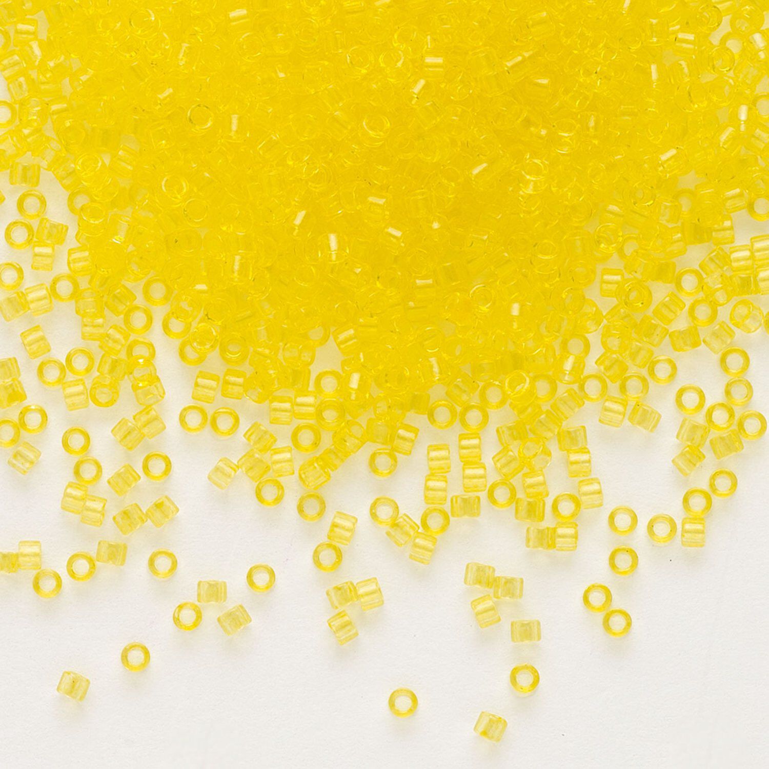 Seed bead, Delica®, glass, pkg/50g, #11 round, transparent outside dyed yellow (DB-1301).