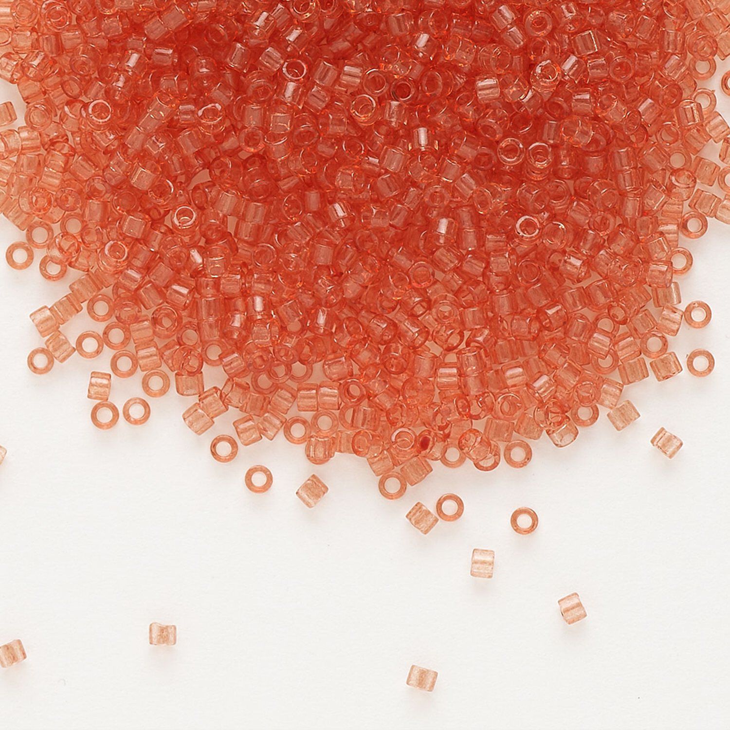Seed bead, Delica®, glass, pkg/250g, #11 round, transparent outside dyed peach (DB-1302).