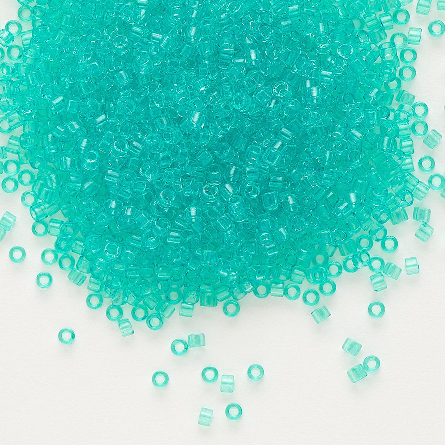 Seed bead, Delica®, glass, pkg/250g, #11 round, transparent outside dyed dark mint green (DB-1304).