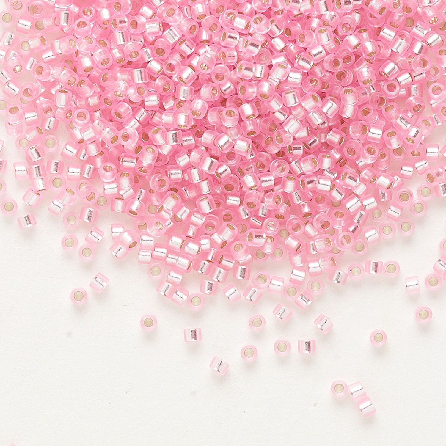 Seed bead, Delica®, glass, pkg/250g, #11 round, transparent outside dyed silver-lined pink (DB-1335).