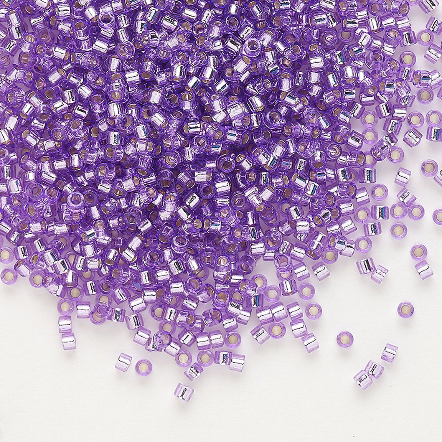 Seed bead, Delica®, glass, pkg/250g, #11 round, transparent outside dyed silver-lined lilac (DB-1343).