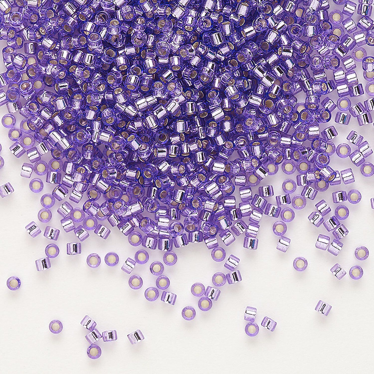 Seed bead, Delica®, glass, pkg/50g, #11 round, transparent outside dyed silver-lined purple (DB-1347).
