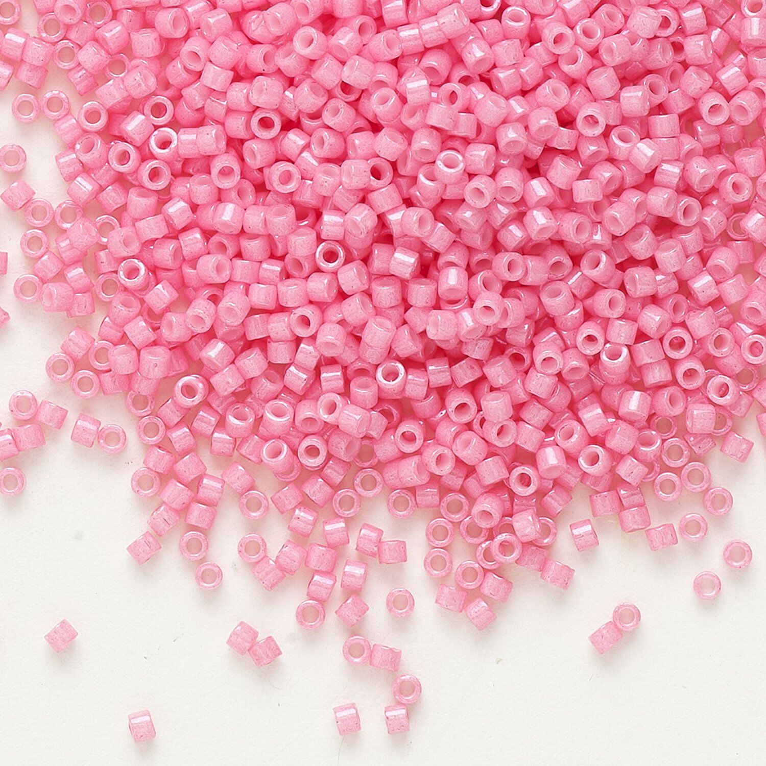 Seed bead, Delica®, glass, pkg/250g, #11 round, opaque carnation pink (DB-1371).