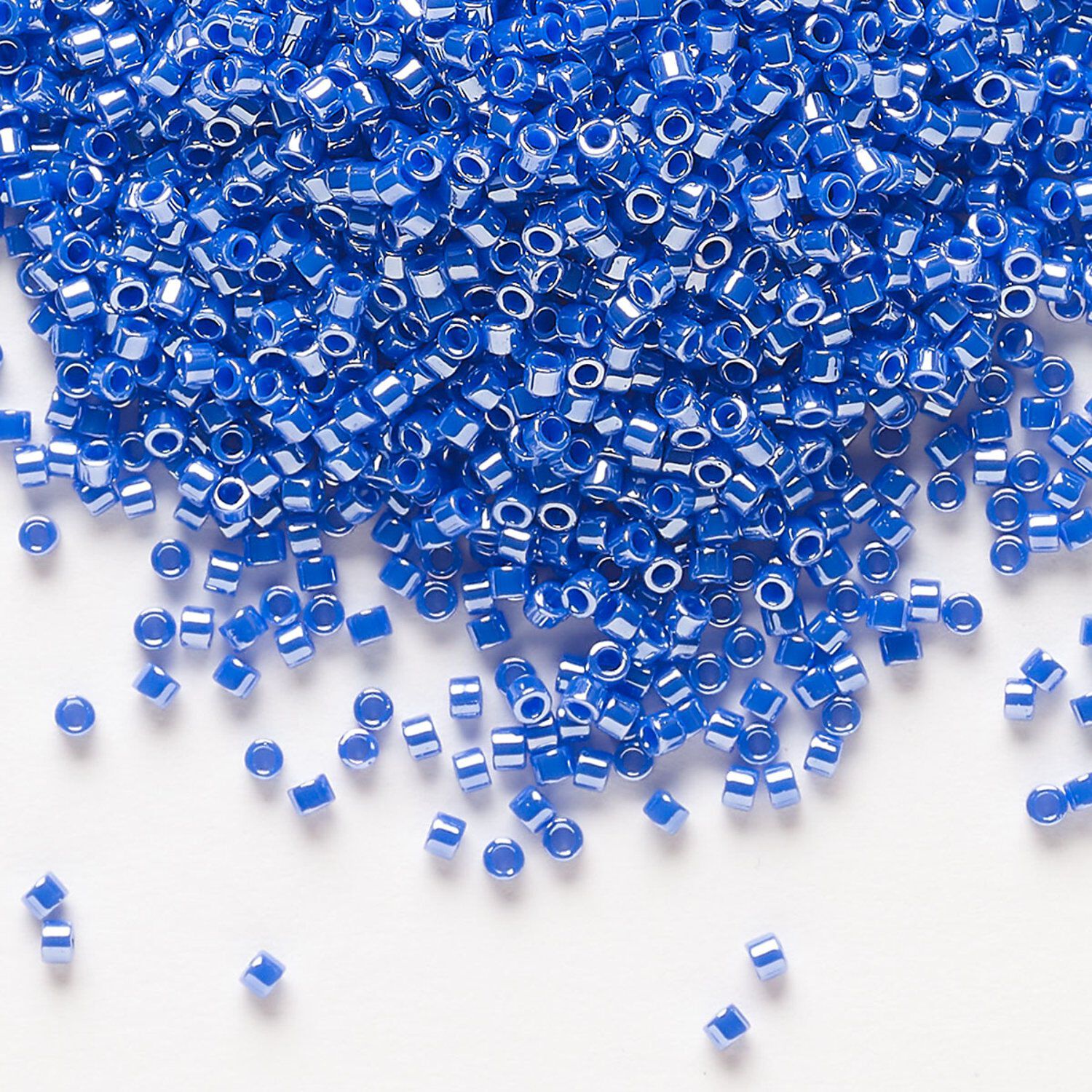 Seed bead, Delica®, glass, pkg/50g, #11 round, opaque luster cyan blue (DB-1569).