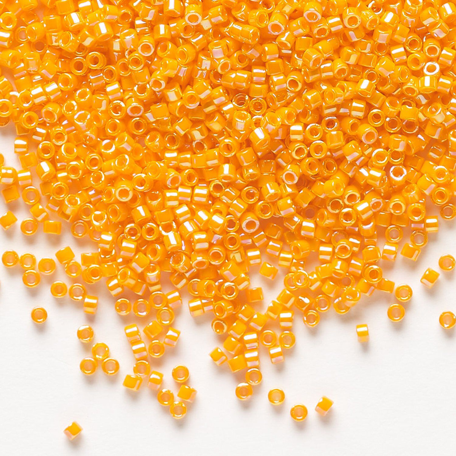 Seed bead, Delica®, glass, pkg/250g, #11 round, opaque rainbow mandarin orange (DB-1573).