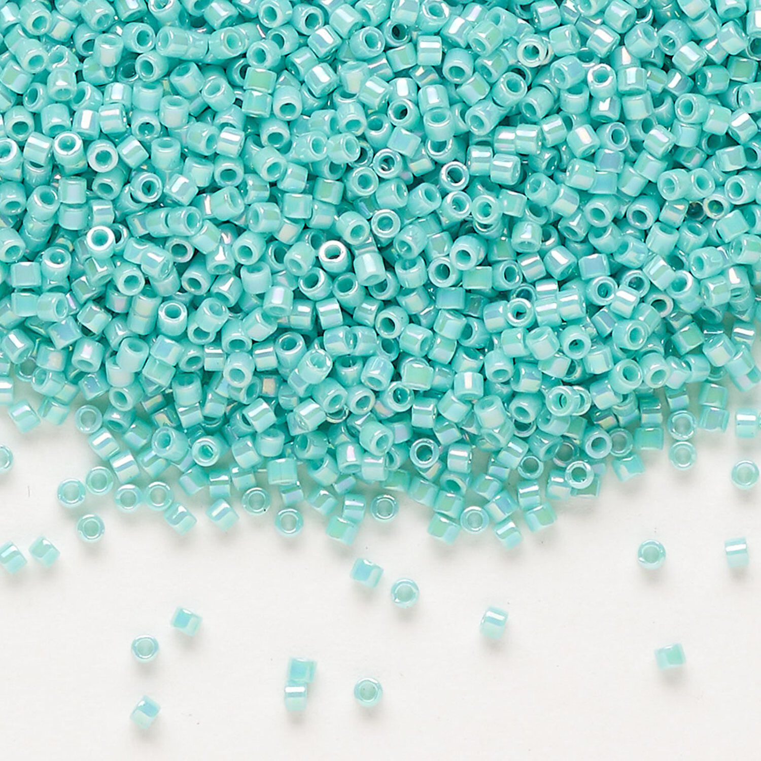Seed bead, Delica®, glass, pkg/50g, #11 round, opaque rainbow sea opal (DB-1576).