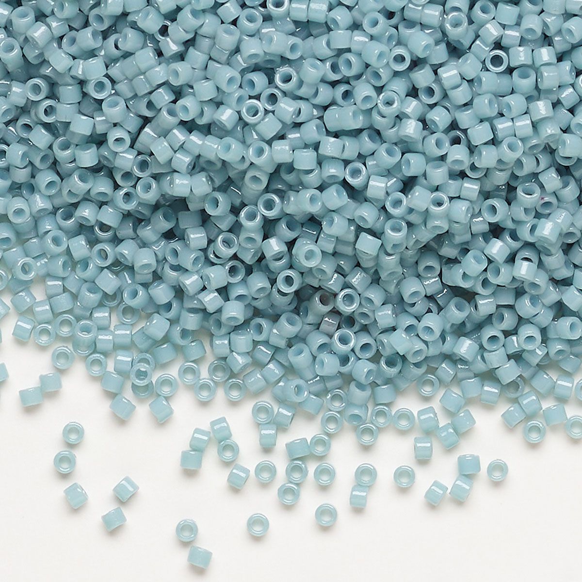 Seed bead, Delica®, glass, pkg/7.5g, #11 round, Duracoat® opaque outside dyed moody blue (DB-2129).