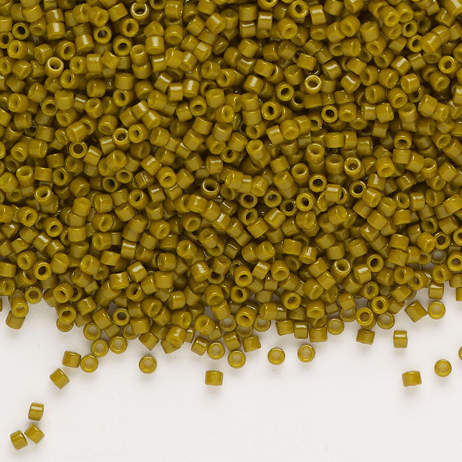 Seed bead, Delica®, glass, pkg/50g, #11 round, Duracoat® opaque outside dyed Spanish olive (DB-2141).