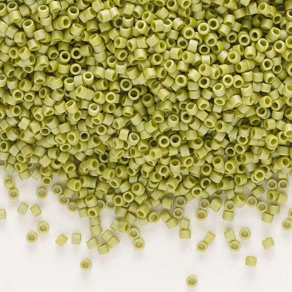 Seed bead, Delica®, glass, pkg/50g, #11 round, opaque matte rainbow seaweed green (DB-2309).