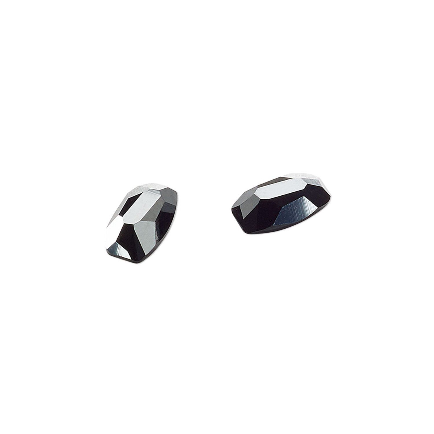 Fancy stone 2pk jet hematite, Crystal Passions® rhinestone 10x6mm organic oval