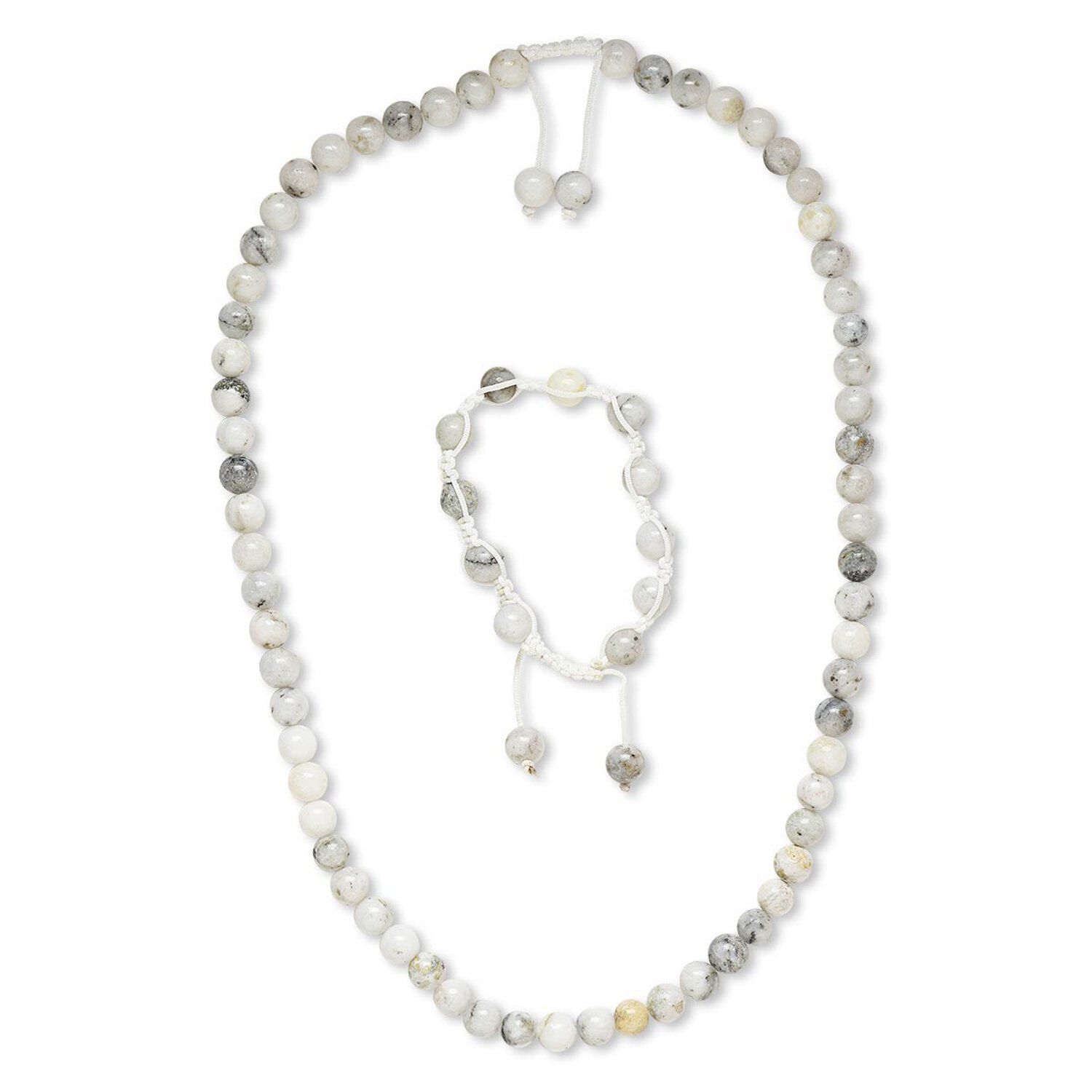 Green earth "jasper" / nylon 1pkg2 round bracelet / necklace natural 7-10 inch / 22-25 inch / adjustable macramé clasp 7-8mm