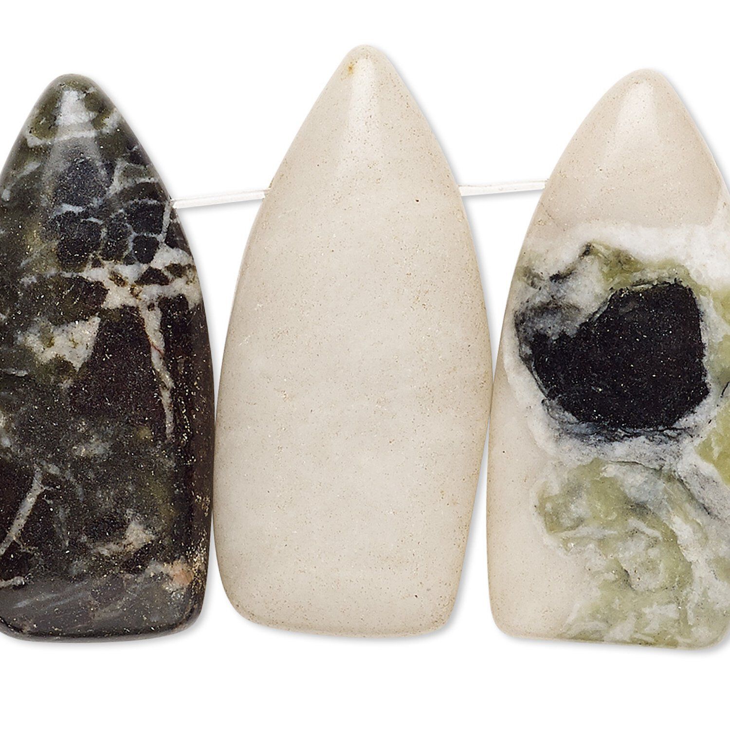 Green earth "jasper" 1pkg4, flat back flat shield focal natural 32x12mm-36x15mm