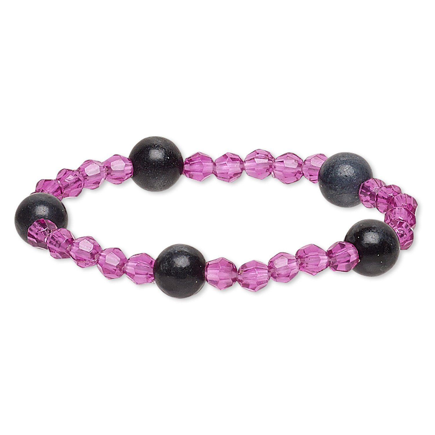 Bracelet, stretch, blackstone (dyed) and acrylic, purple, 5-6mm faceted round and 9-10mm round, 6 inches. Sold individually.