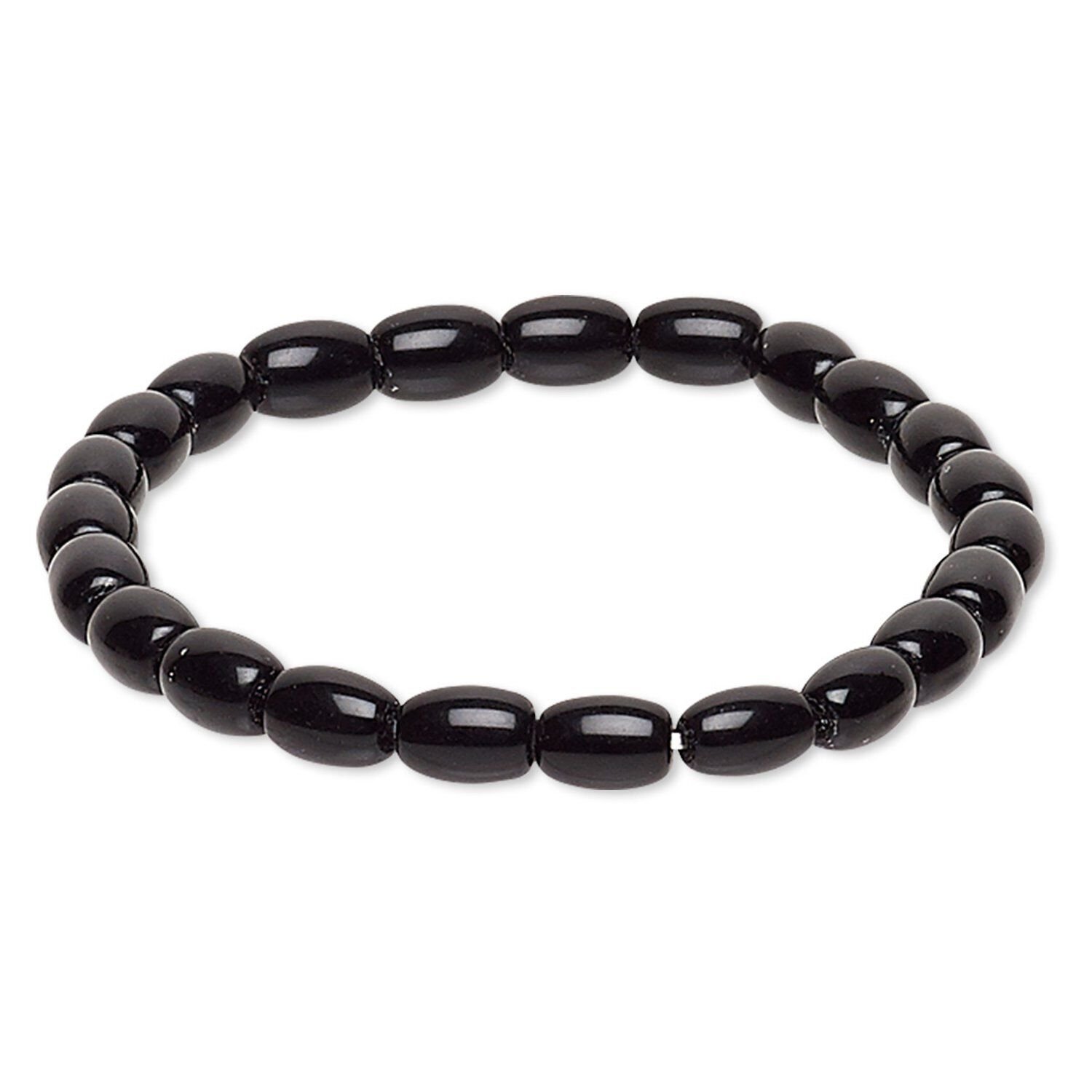 Bracelet, stretch, glass, black, 7x5mm-8x6mm barrel, 6-1/2 inches. Sold individually.
