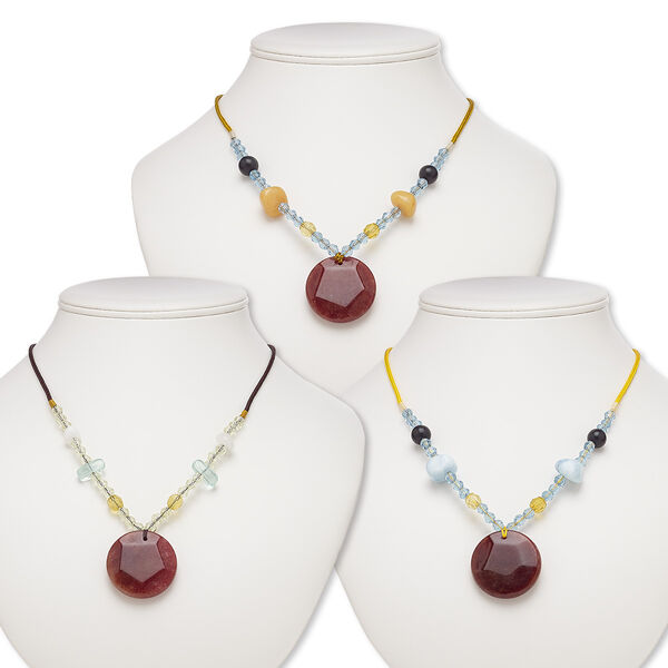 Multi-gemstone / glass / acrylic / nylon 1pkg3, round necklace 20 to 24 inch continuous loop mix 34-35mm