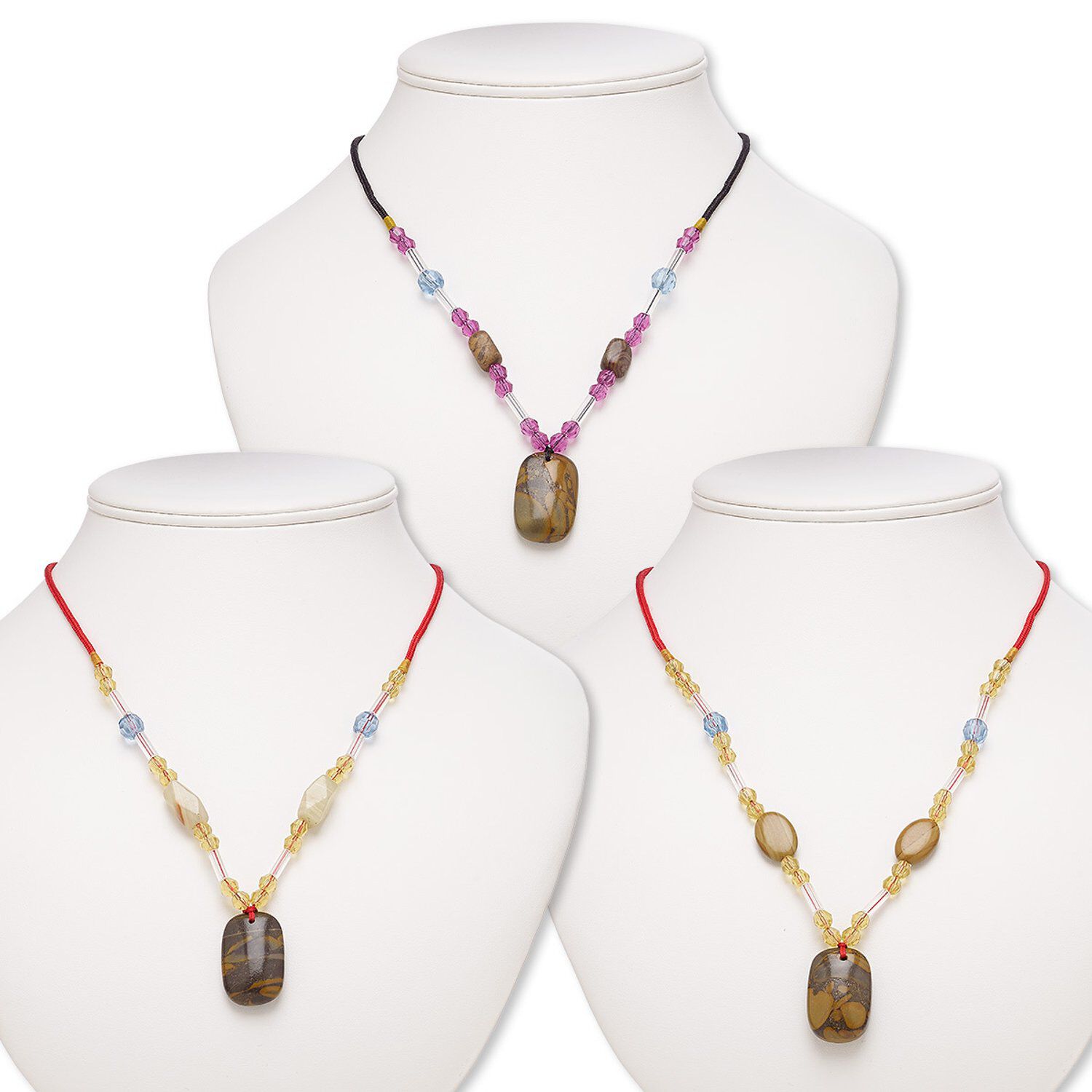 Multi-gemstone / acrylic / glass 1pkg3, rounded rectangle pendant necklace mix continuous loop 20 inch 29x19mm-30x20mm