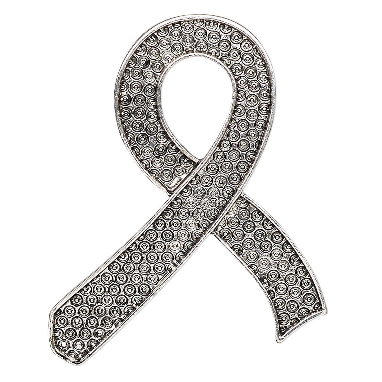 Focal, antique silver-finished "pewter" (zinc-based alloy), 48x22mm awareness ribbon with 2 hidden loops. Sold individually.