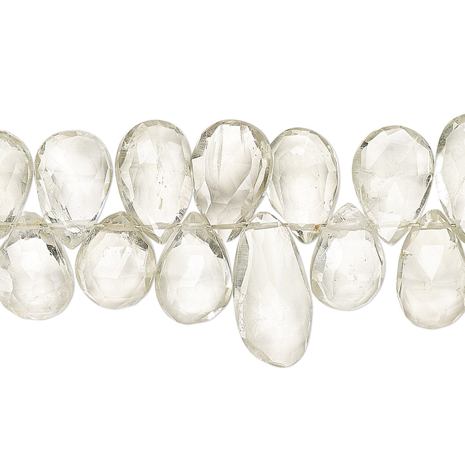 Green quartz 1pkg1, hand-cut top-drilled faceted puffed teardrop bead 4 inch 10x7mm-16x8mm