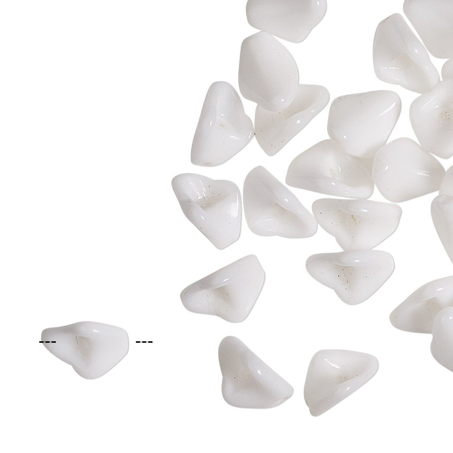 Bead, vintage German pressed glass, opaque white, 9x7mm curved diamond. Sold per pkg of 30.
