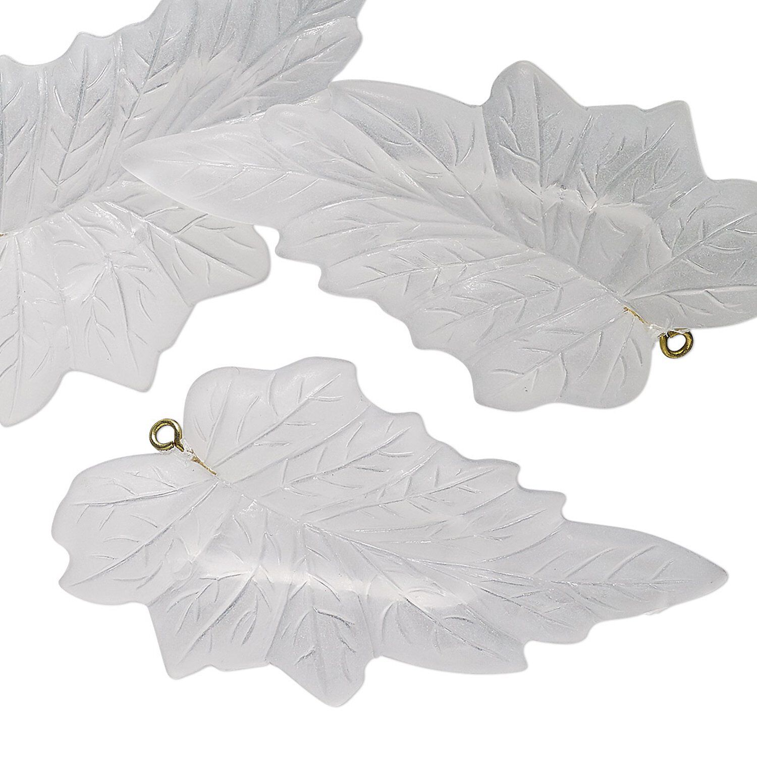 Focal, vintage German acrylic and gold-finished "pewter" (zinc-based alloy), frosted translucent clear, 50x35mm leaf. Sold per pkg of 3.