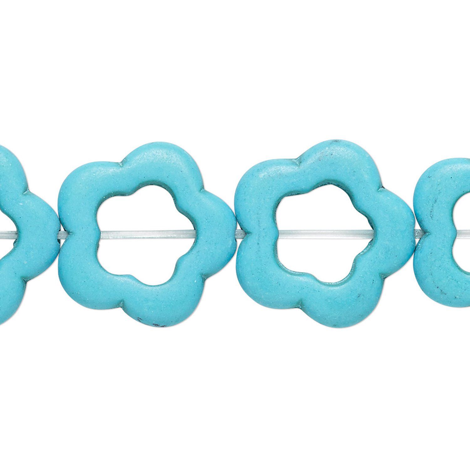 Bead, "howlite" (resin) (imitation), turquoise blue, 19x18mm-20x19mm open flower, 10x8mm center hole. Sold per 15-inch strand.