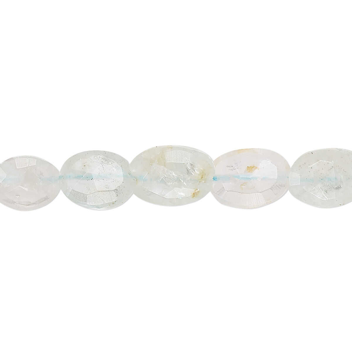 Aquamarine 1pkg1, hand-cut faceted puffed oval bead 8 inch 8x7mm-13x8mm