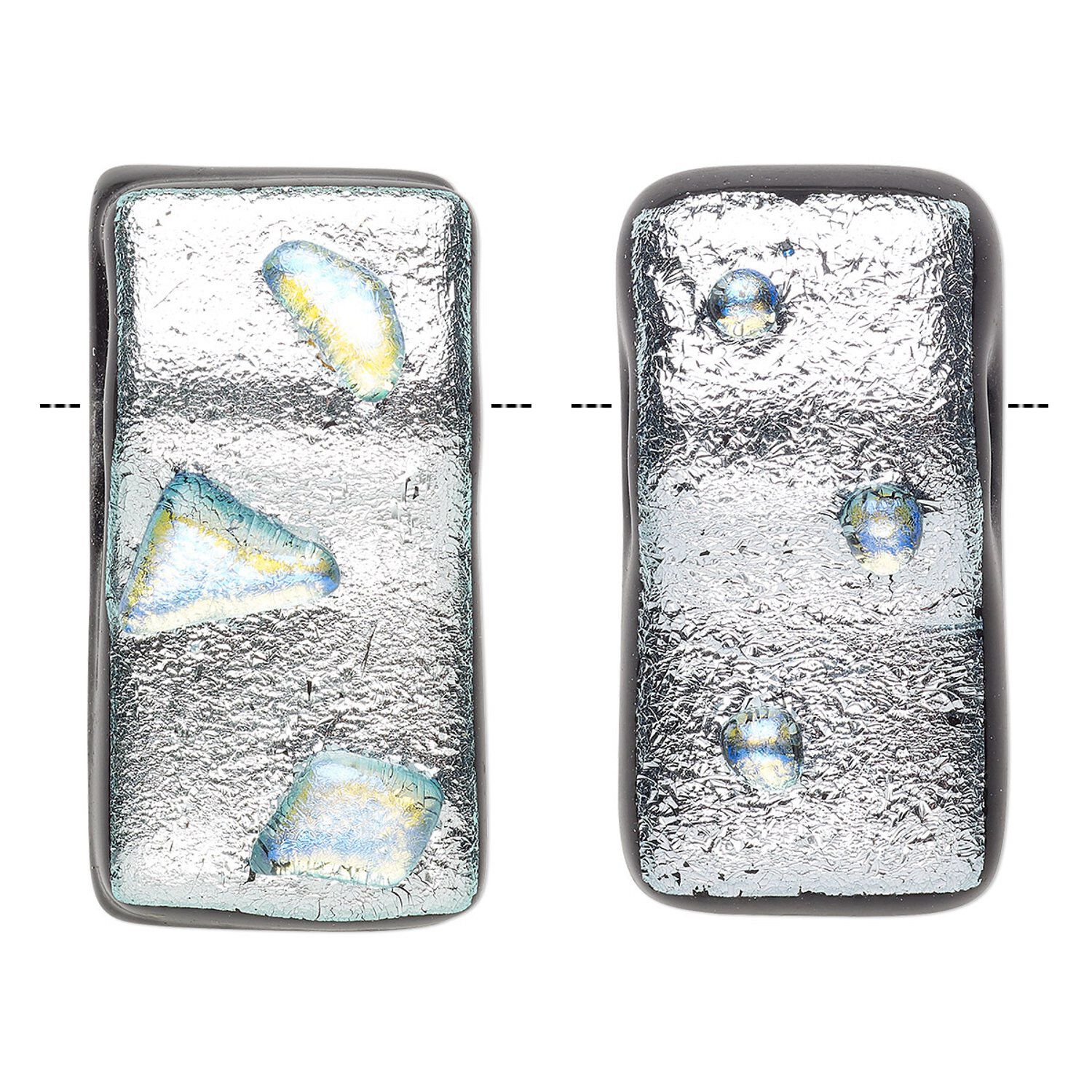 Bead, Paula Radke, dichroic glass, opaque silver / blue / yellow, 31x15mm-33x18mm top-drilled rectangle. Sold individually.