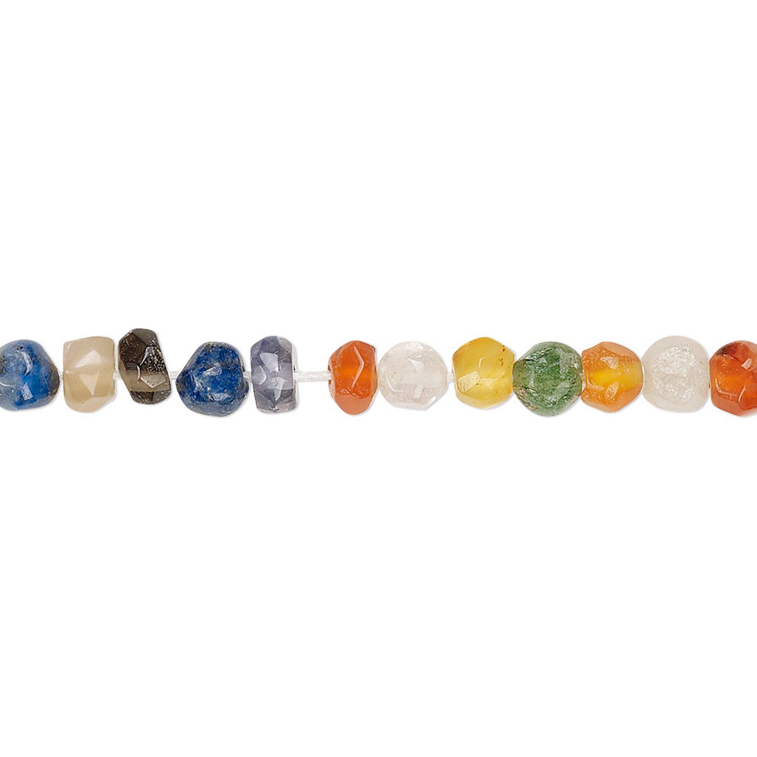 Material can include amethyst, carnelian, goldstone and more. Shapes can include rondelle, uneven round and heishi. Sizes, shapes and colors may vary with handcrafted items.