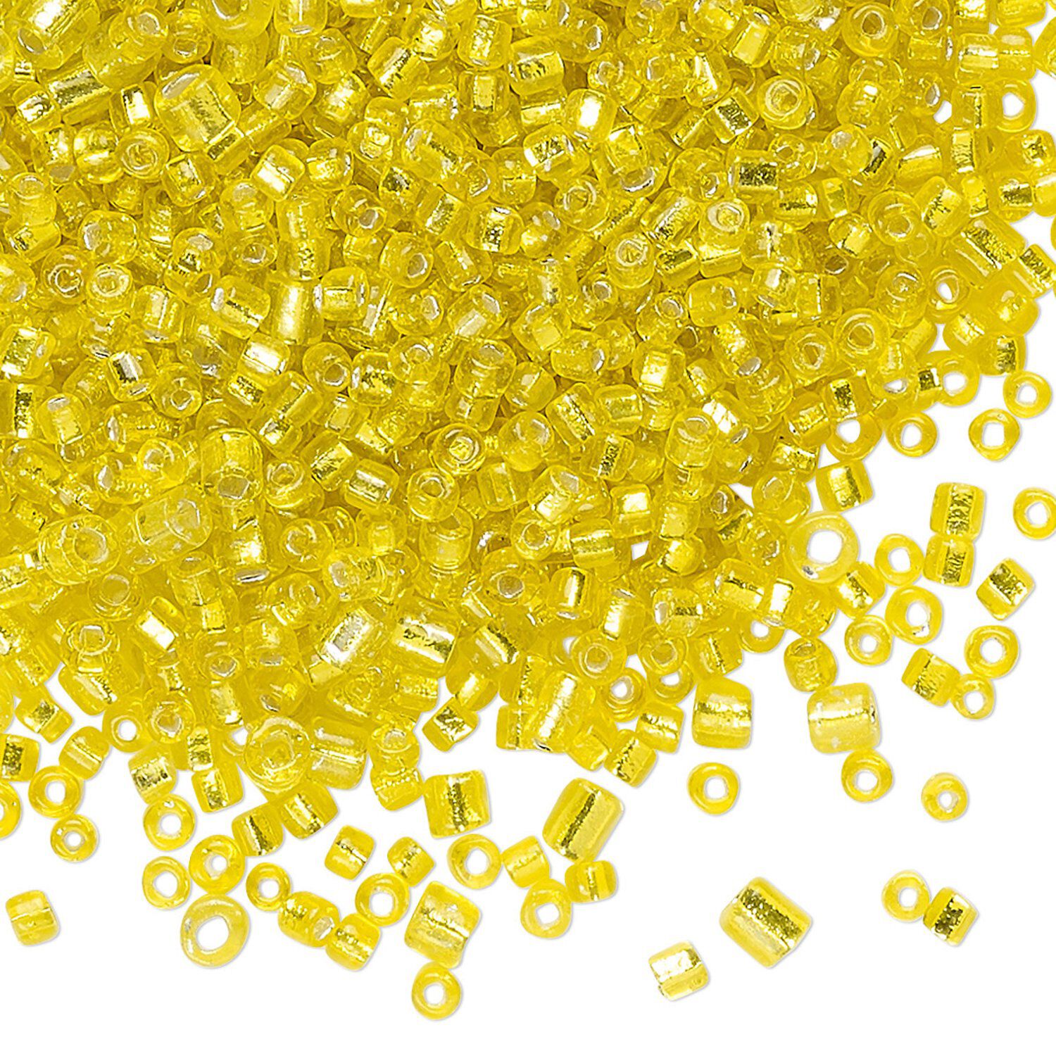 Seed bead mix, glass, pkg/100g, 11/0-6/0 round, opaque silver-lined yellow.