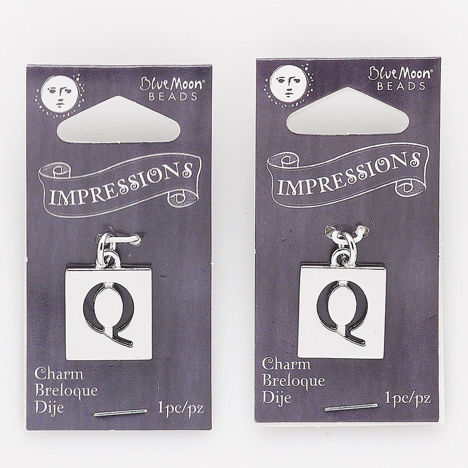 Drop, silver-finished "pewter" (zinc-based alloy) and steel, 16x15mm square with cutout alphabet letter "Q." Sold per pkg of 2.