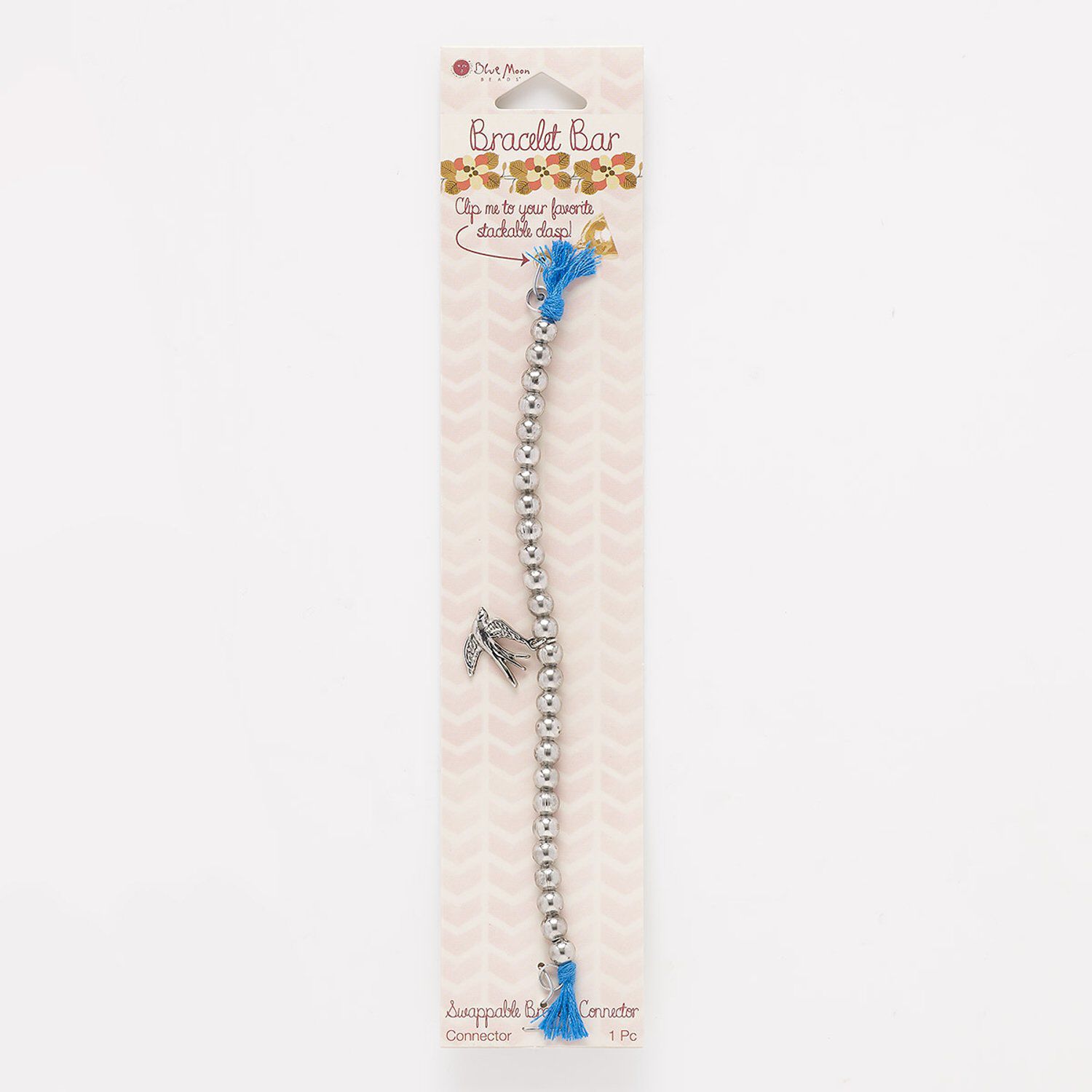 Bracelet component, acrylic / cotton / antique silver-finished "pewter" (zinc-based alloy), silver and blue, 6mm round and 19x15mm bird, 6 inches. Sold individually.
