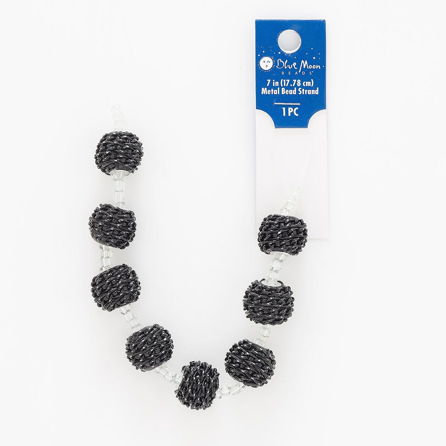 Bead, coated glass and silver-finished "pewter" (zinc-based alloy), 15mm chain-wrapped round with 3mm hole. Sold per 7-inch strand.