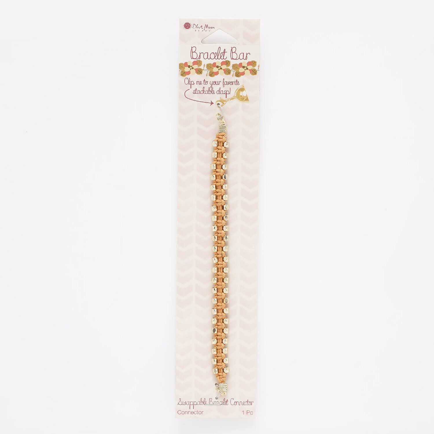 Bracelet component, gold-finished "pewter" (zinc-based alloy) / steel / cotton, orange, 10mm wide, 6 inches. Sold individually.