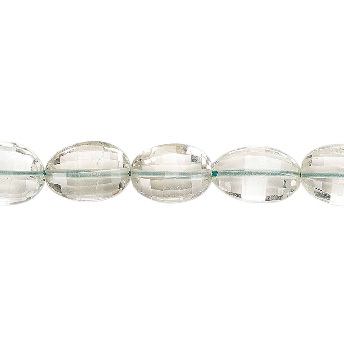 Green quartz 1pkg1, hand-cut faceted puffed oval bead 8 inch graduated 9x6mm-14x10mm