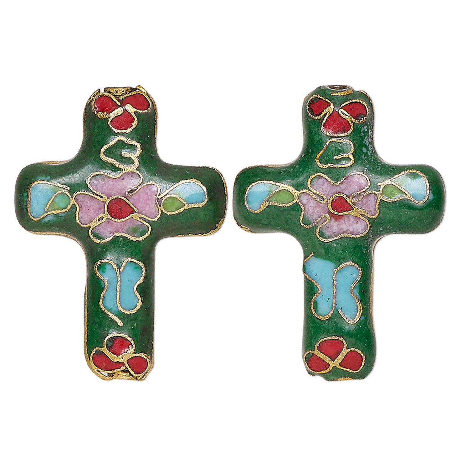 The centuries-old technique of cloisonné requires skilled artisans to arrange dozens of tiny cells on a brass surface and, layer by layer, fill in the cells with enamel, then fire to finish. Bead is made by hand, some variations in size, color and pattern can be expected. Colors can include green, pink, blue and more.