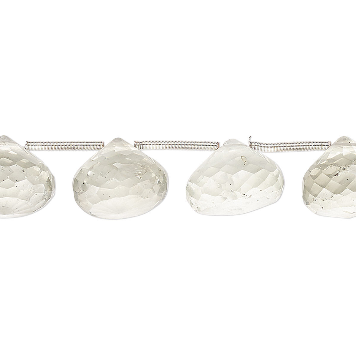 Green quartz 1pkg13, hand-cut top-drilled faceted teardrop bead 11x8mm-12x10mm