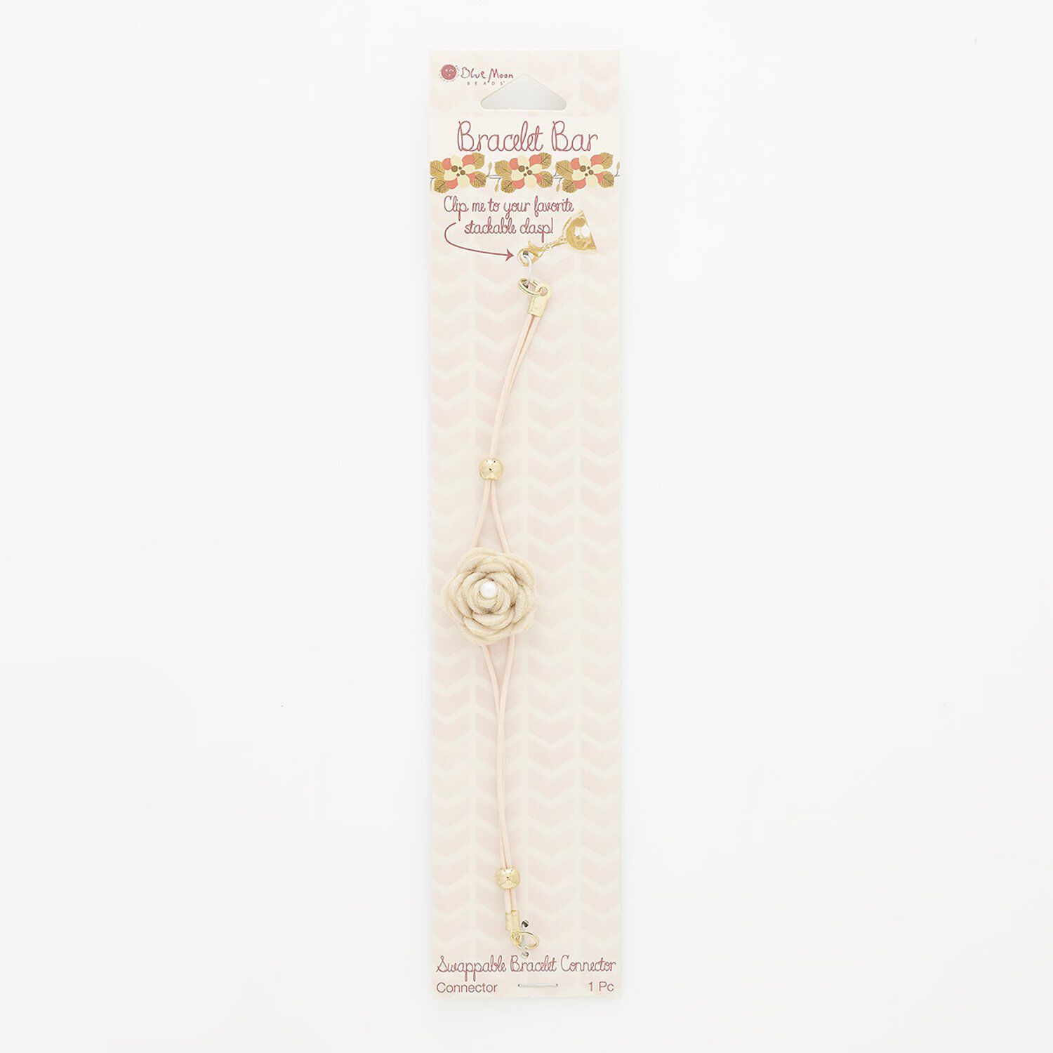 Bracelet component, vinyl / felt / gold-finished "pewter" (zinc-based alloy) / gold-finished steel, cream / white / light pink, 20mm wide, 6 inches. Sold individually.