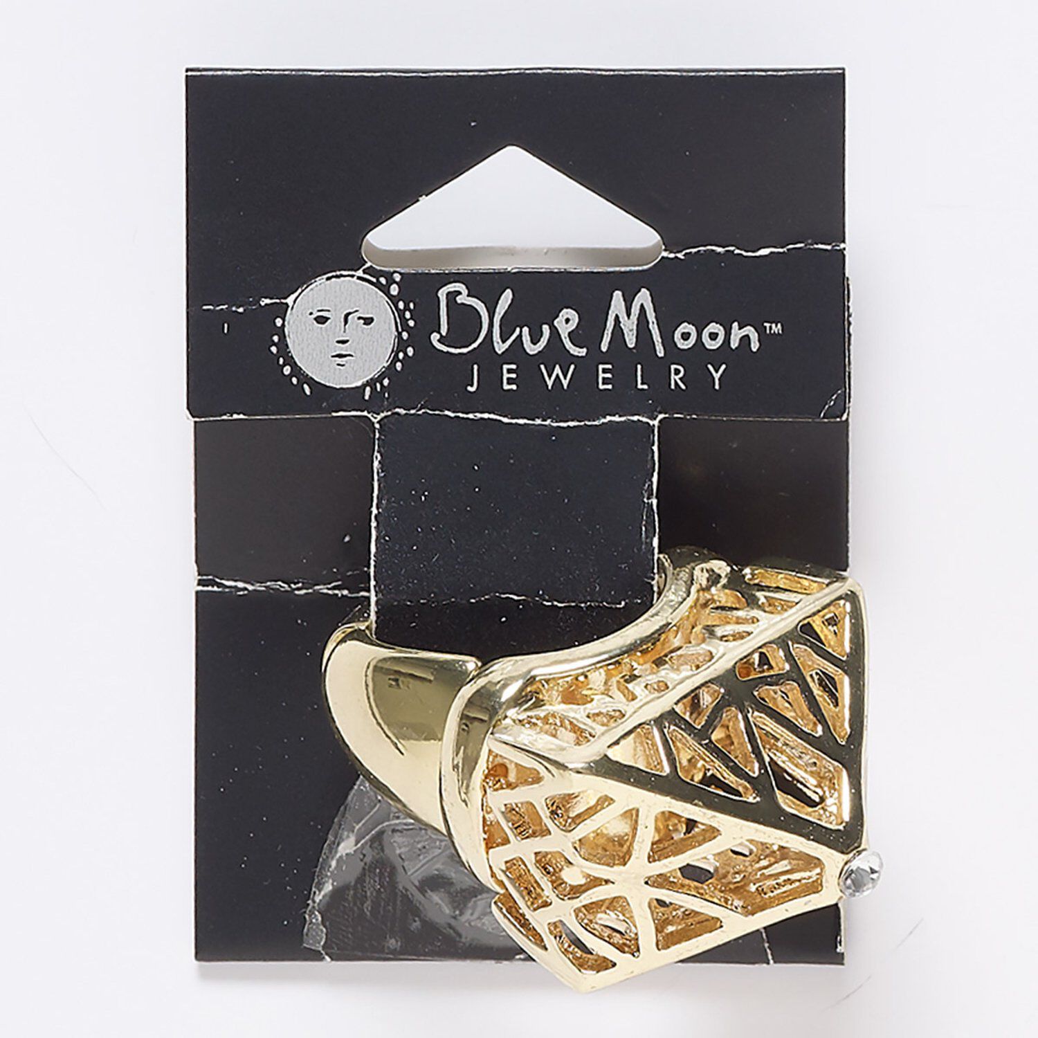 Ring, stretch, acrylic and gold-finished "pewter" (zinc-based alloy), clear, 19mm wide, 28x22x19mm, adjustable from size 6-1/2 to 9. Sold individually.