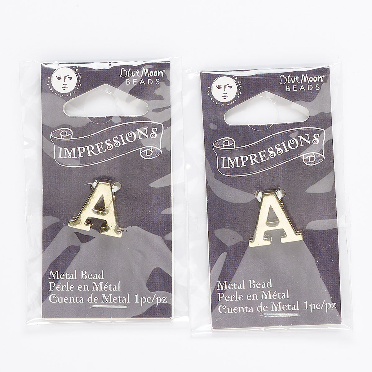 Bead, gold-finished "pewter" (zinc-based alloy), 14x13mm top-drilled alphabet letter "A" with 2mm hole. Sold per pkg of 2.