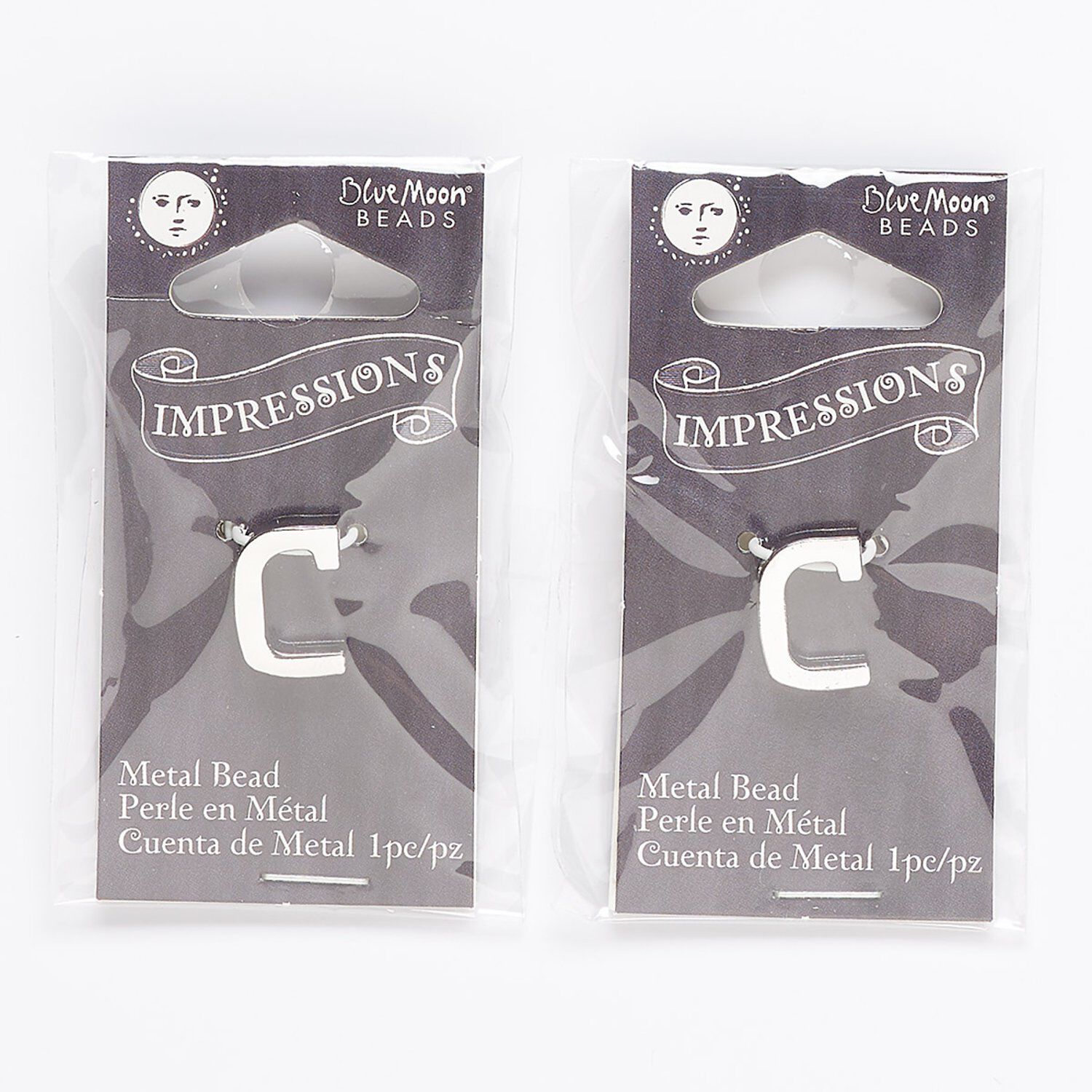 Bead, silver-finished "pewter" (zinc-based alloy), 13x9mm top-drilled alphabet letter "C" with 2mm hole. Sold per pkg of 2.